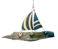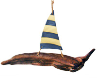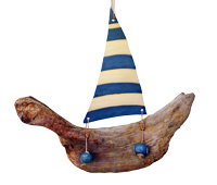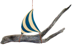 At high tide the harbour is busy and bustling, with mainsails and colourful spinnakers as far as the eye can see and boats moving in all directions. Sails flap on the foreshore as boats launch, whilst further out the sails billow as they capture the wind. The boat series incorporates blue and white ceramic sails of different sizes attached to driftwood with leather or reclaimed rope. From a small nautical gift to a wall hung statement piece for a coastal home, the boat series is a popular choice. There has been some artistic licence with fenders out whilst under sail!